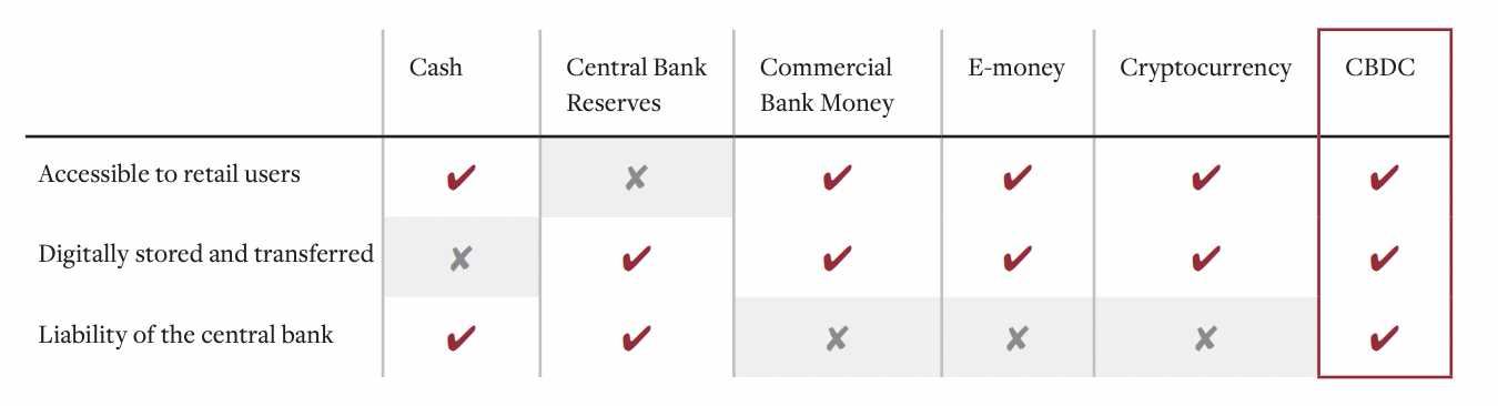CBDC stands for central bank digital currency. A CBDC is a form of digital cash issued by a country’s central bank. Their value is fixed by the central bank and reflects the country’s fiat currency.