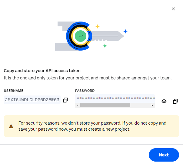 After you’ve copied your Username and Password, click Next to receive your Endpoint. Copy this along with your Username and Password, and we’ll use it all in the project.