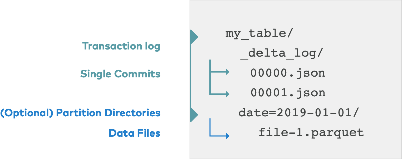When a user creates a Delta Lake table, that table’s transaction log is automatically created in the _delta_log subdirectory. As the user modifies the table, each commit is written as a JSON file into the _delta_log subdirectory in ascending order, i.e. 000000.json, 000001.json, 000002.json and on.