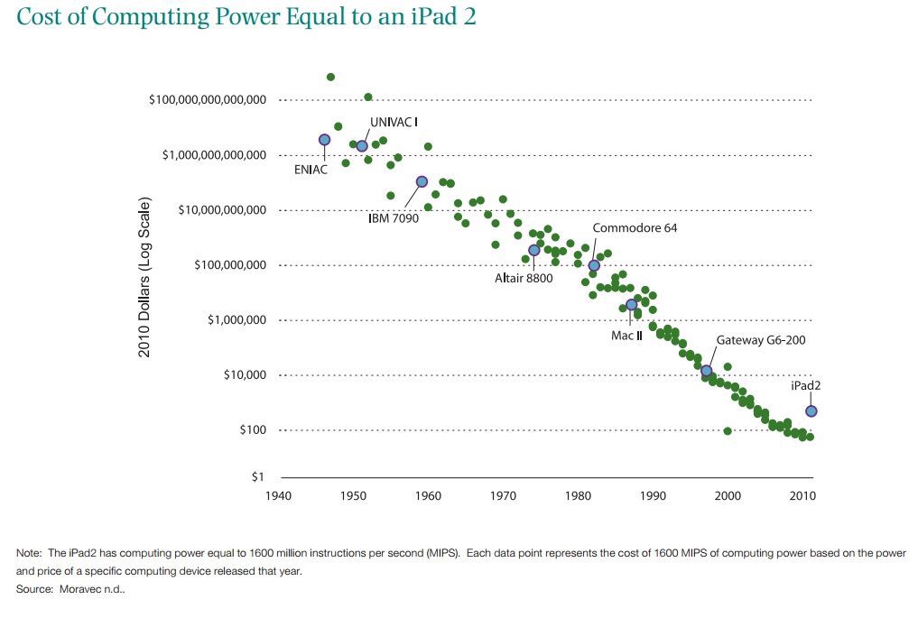 If the typical worker in 1982 wanted to purchase something with computing power of an iPad2, it would have cost more than the 360 years worth of wages.