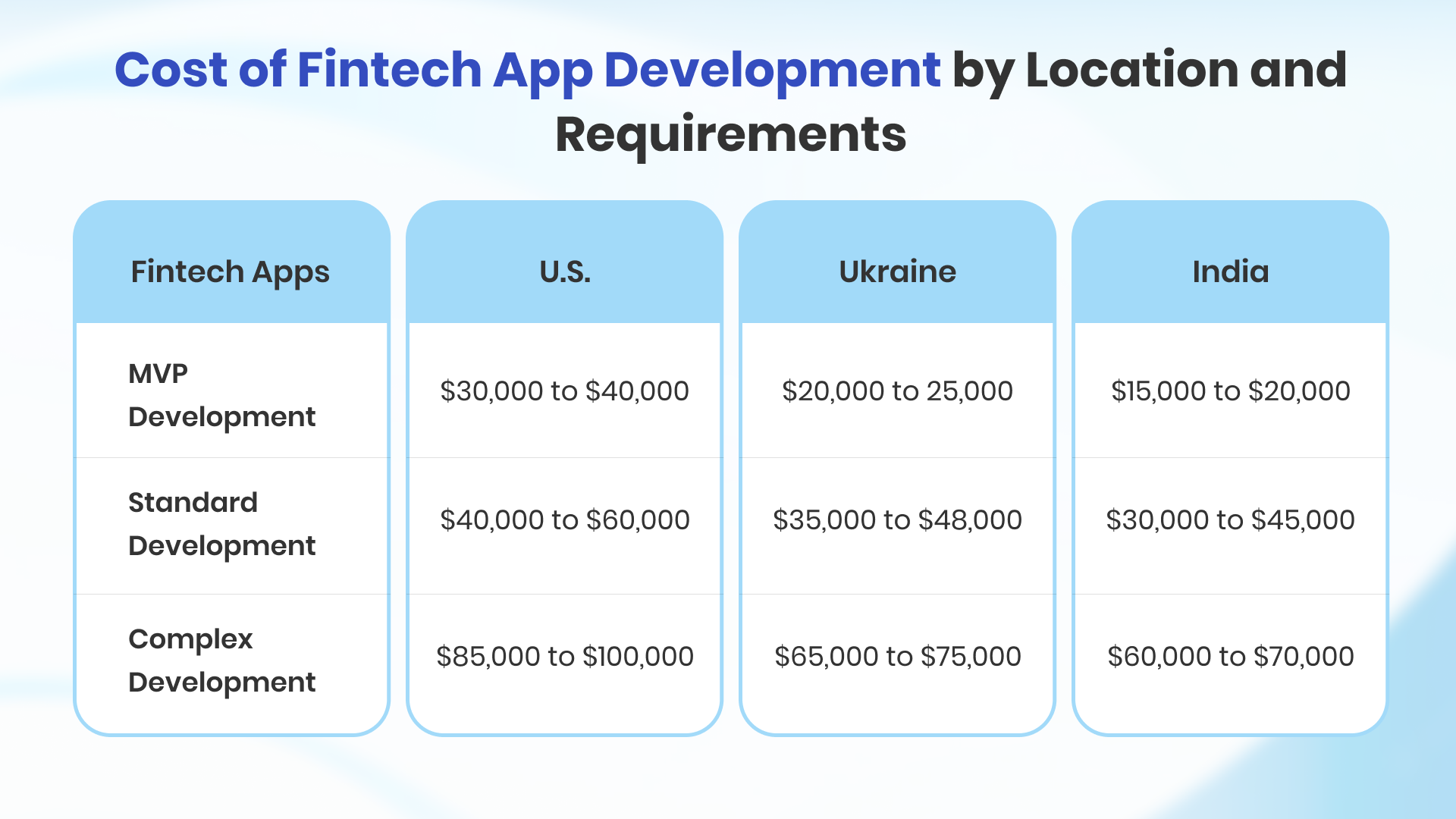 Cost of Fintech App Development by Location and Requirements