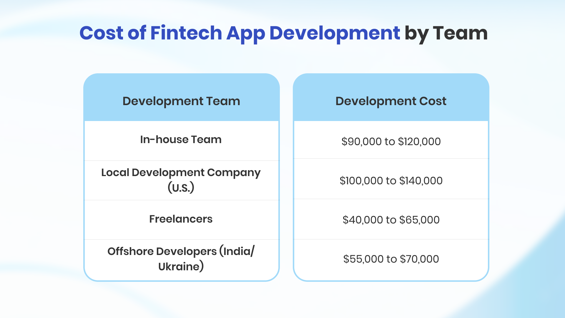 Cost of Fintech App Development by Team