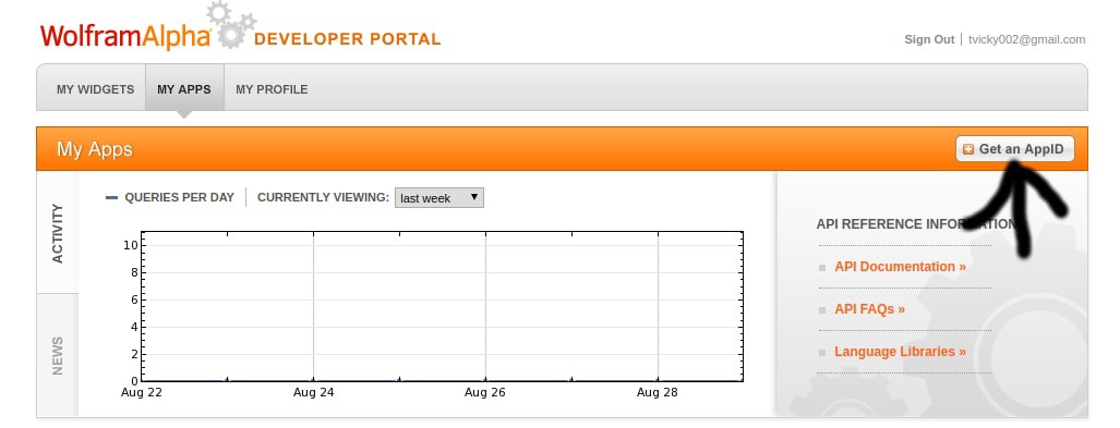 Dev WolframAlpha- Go to developer WolframAlpha and create your account.- Go to My apps section and click on Get an AppID.