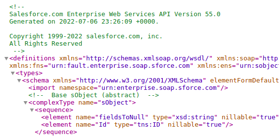We save this file to our local machine, naming it enterprise_wsdl.xml.