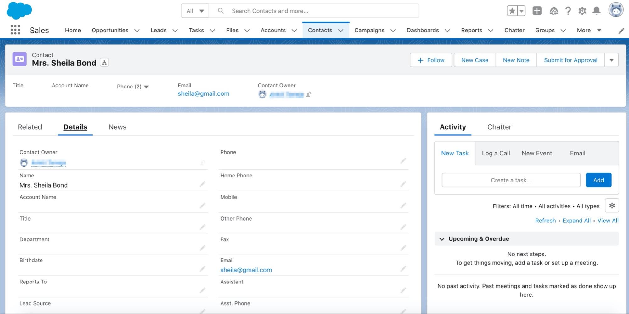 When we click on the Contact name, we end up on the Details page for that Contact.
