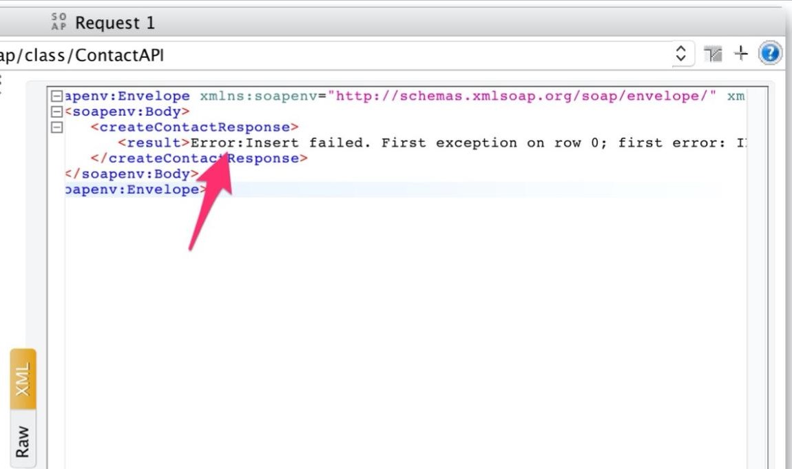 Lastly, in order to ensure that our API is working properly, let’s send a bad request to see what we get as a response. We’ll simply send another request to our SOAP web service, but this time replace the . in the email address with a , instead.