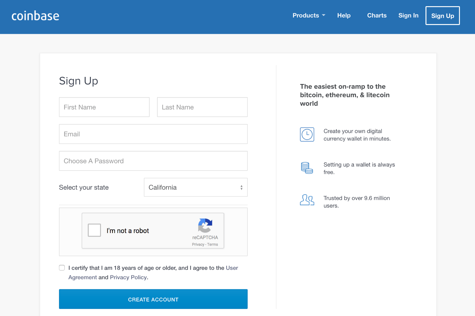 Coinbase is an online exchange that allows you to buy and sell cryptocurrencies. There are others, but Coinbase is the most popular with millions of users. I’ve also heard that it’s the simplest and easiest to use (I haven’t actually looked into any of the others because I wanted to execute as quickly as possible).