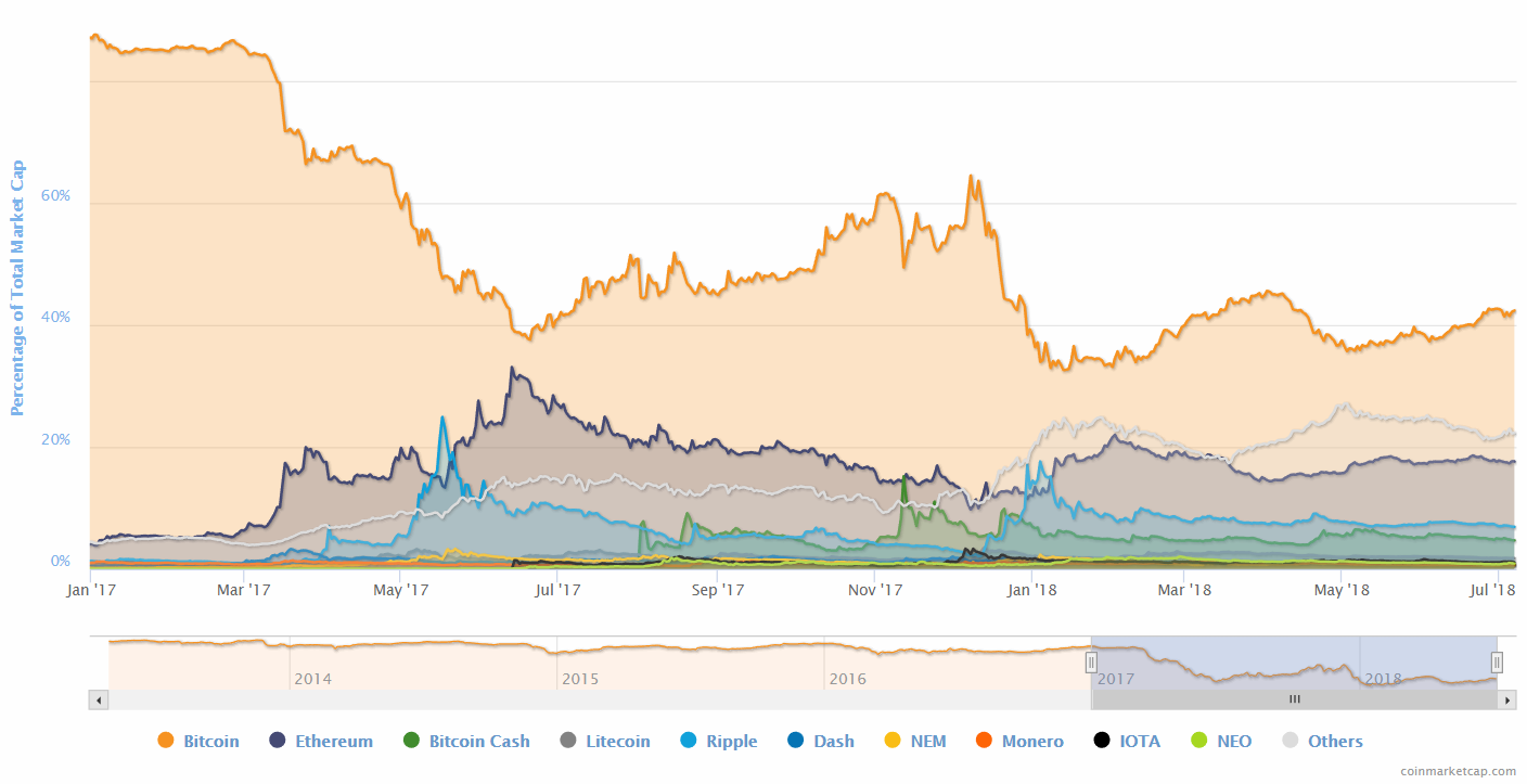 Figure 2. Market Cap Dominance of Selected Cryptoassets (coinmarketcap.com)