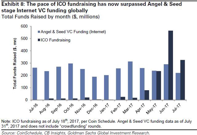I believe that different cryptocurrency coins are acting like a huge redistribution of wealth and this trend will most likely just continue growing. This summer was the first time in history that ICO fundraising surpassed that of Venture Capital, in terms of total funds: