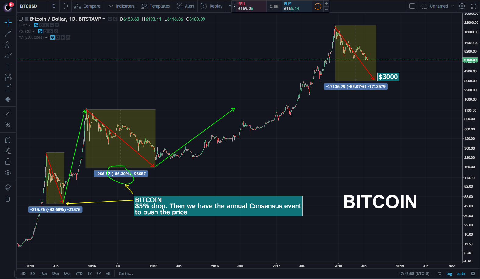 Would Bitcoin drop to $3,000? No one knows. But what we can investigate is the previous price action using technical analysis and prepare our portfolio accordingly.