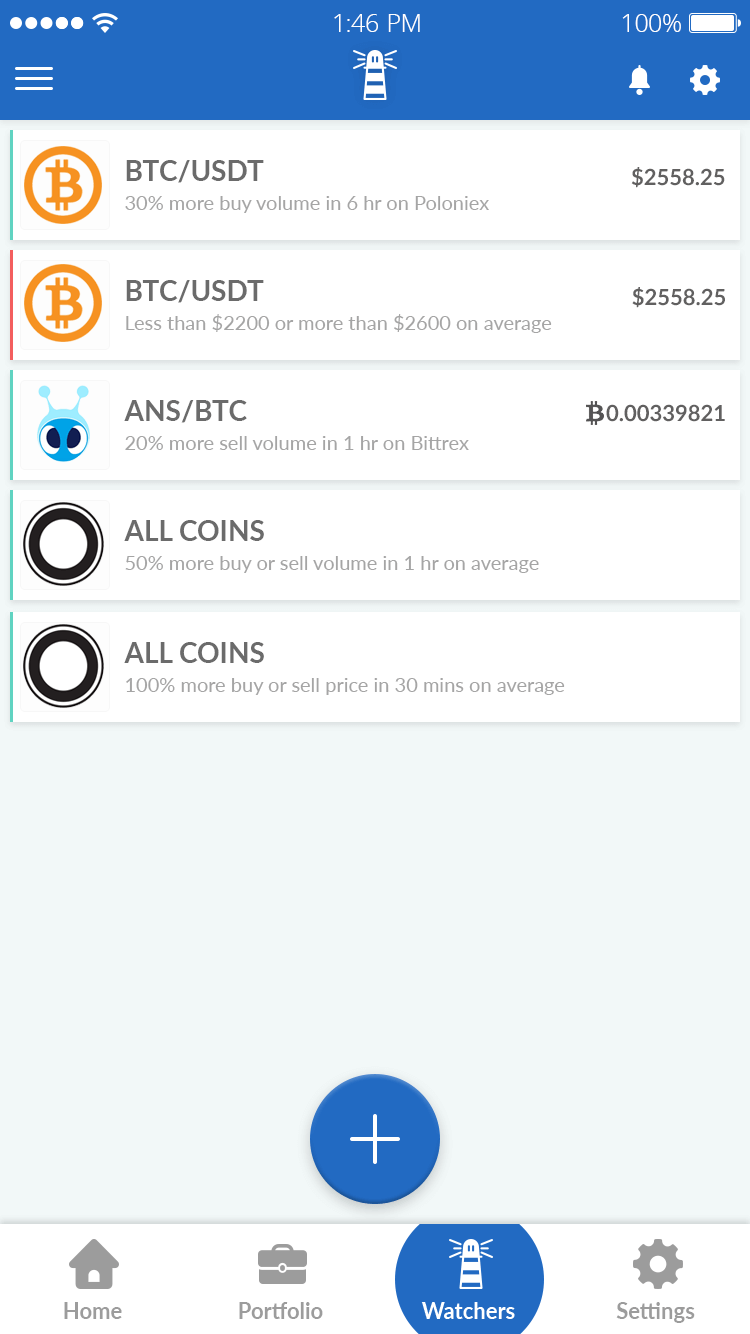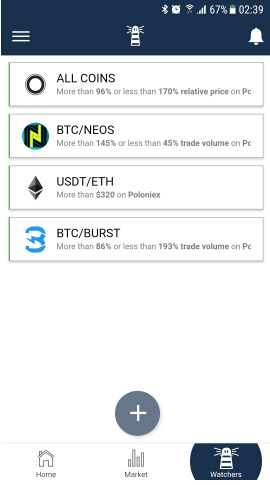 WATCHERS: Watchers is themain feature which differs trackr from other portfolio cryptocurrency management app. The purpose of this feature is to make it as easy as possible for users to setup and be able to track any number of currencies or trades with a huge variety of rules.