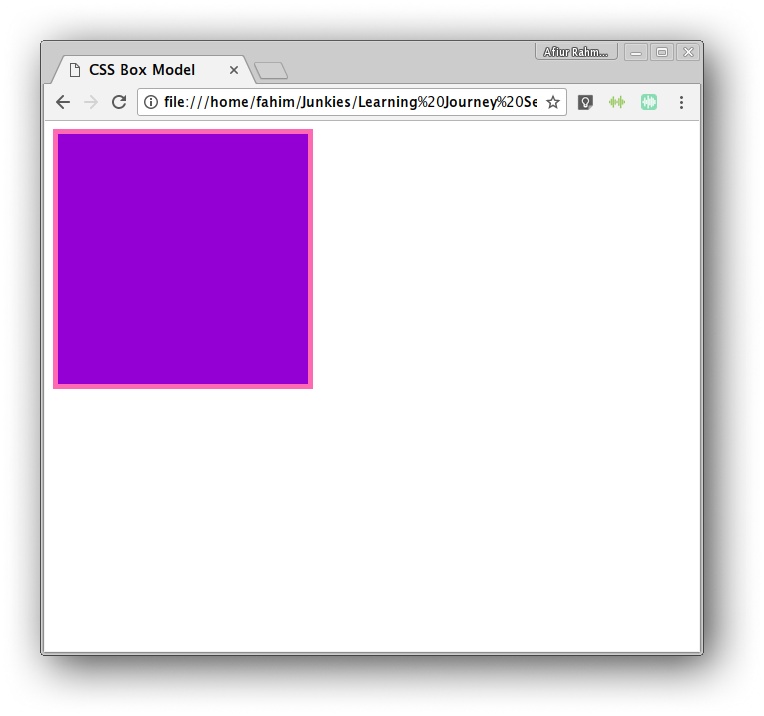 So, I’ve created a very simple HTML page with only one div element. div is a block-level element. So it’ll support all the CSS properties of box model.