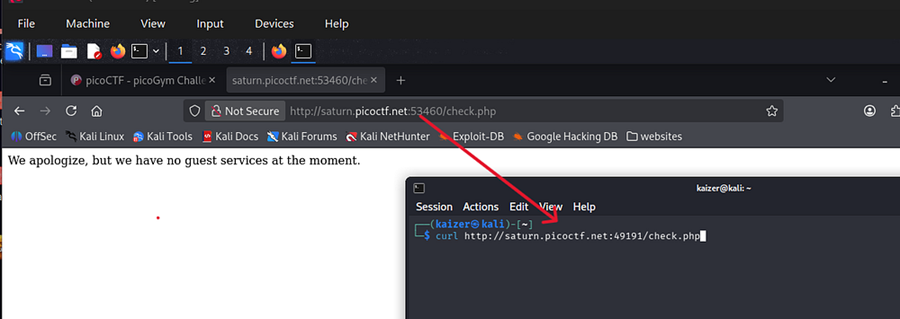 Step 1: Try accessing the page: curl http://example.com/check.php
