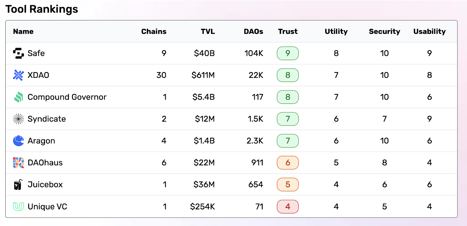 With a recently closed seed funding round that drew $2 million of investments from professionals from around the sphere, XDAO's modular architecture allows users to create add-ons on top of the platform’s protocol. Registered in Singapore for extra peace of mind and with a 10/10 security rating on asset management tooling aggregator Daoscanner, XDAO is a fully customizable structure. It can be used for treasury management, multisig wallet, and as a platform for investment. It also supports 30 separate blockchains on its platform making it a leader in the sphere.