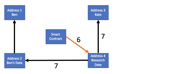 - Amazon pays the digital object at Address 4 to use the data via a smart contract. This is distributed to the owners.