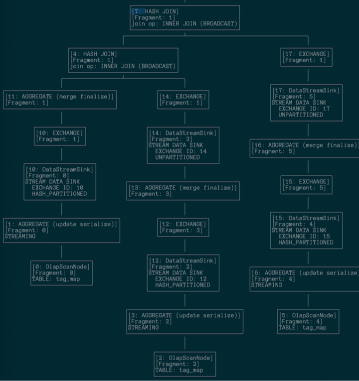 The following is the query plan before we adopted Collocate: It is complicated, with a lot of data shuffling.