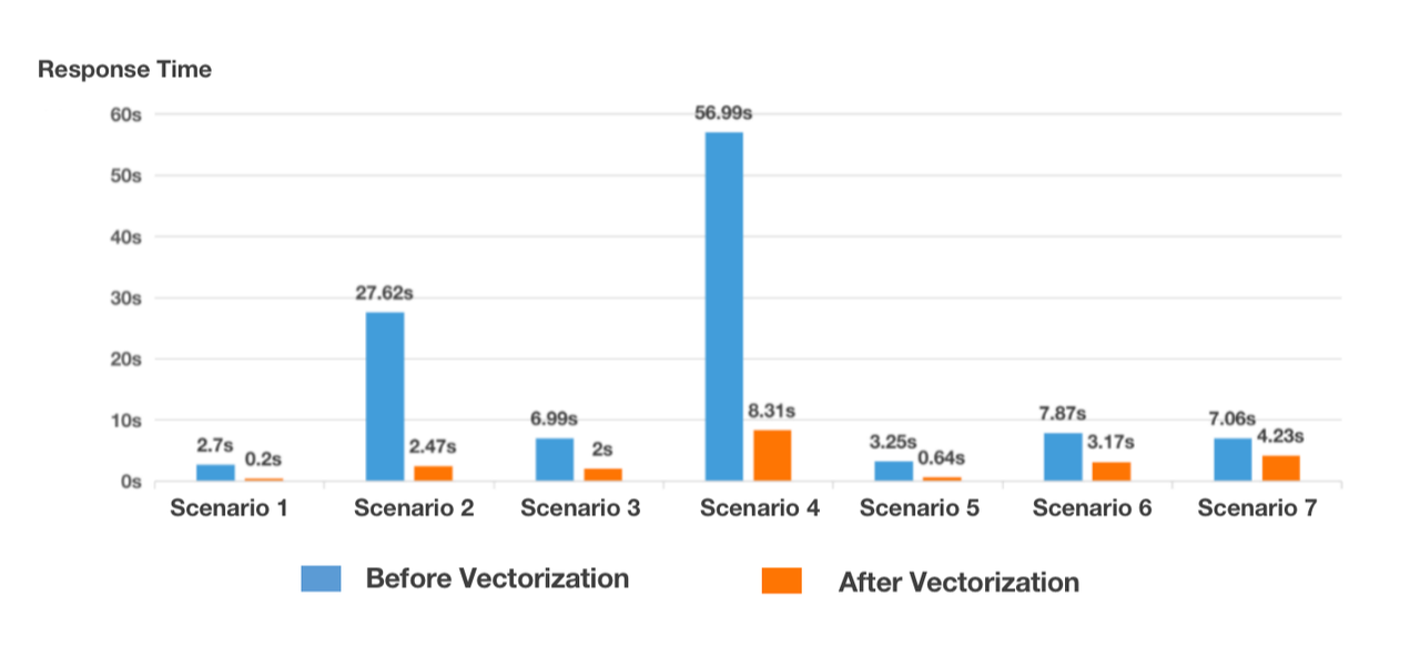 They compared query response time before and after the vectorization in seven of its frequent scenarios: