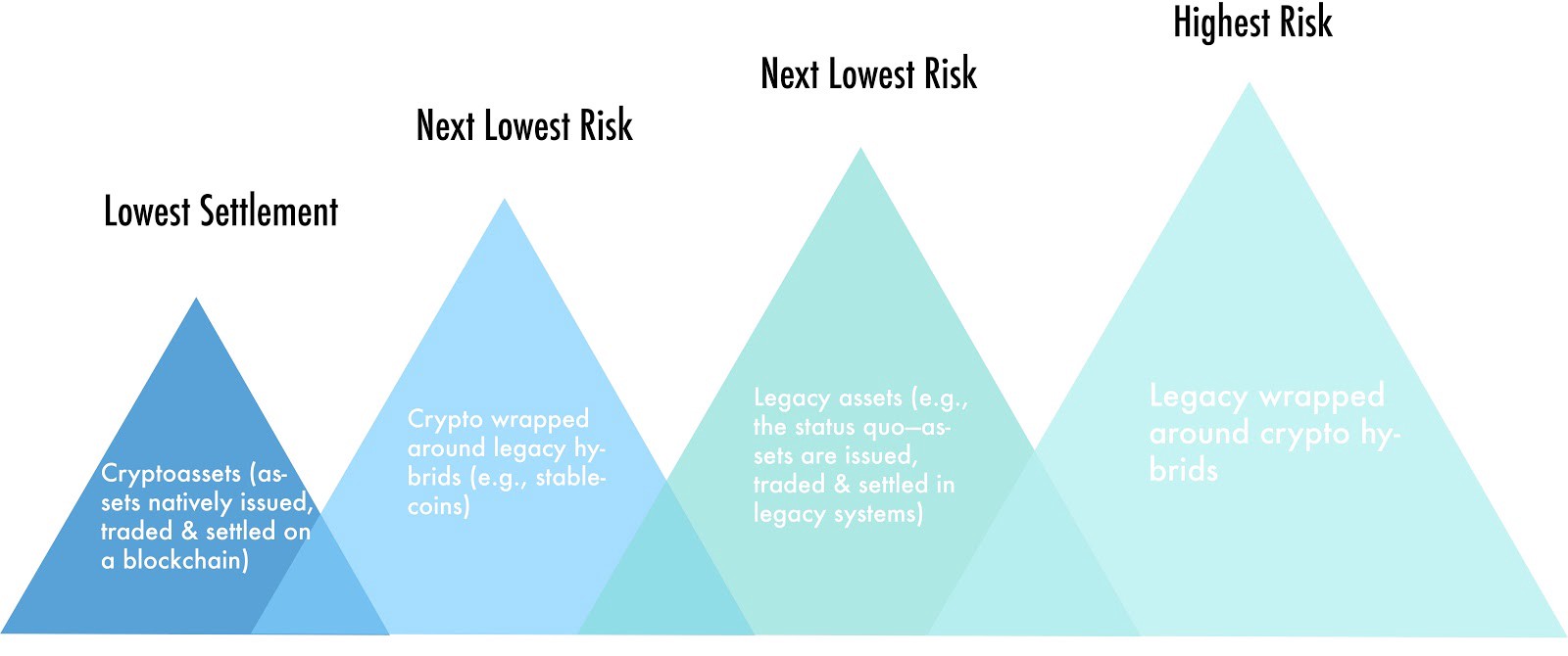 By nature, crypto systems objectively have lower settlement risk than legacy systems. Here’s the ranking of settlement risks by category from lowest to highest.