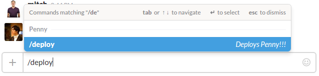 We’ve implemented our deploy system using Slack’s custom commands integration. Slack is a brilliant channel for making deploys easy because it’s always open, easy to use, and obviates building a dashboard with a button on it. You can even post results back to Slack, where they’re automatically logged. Here’s how we did it: