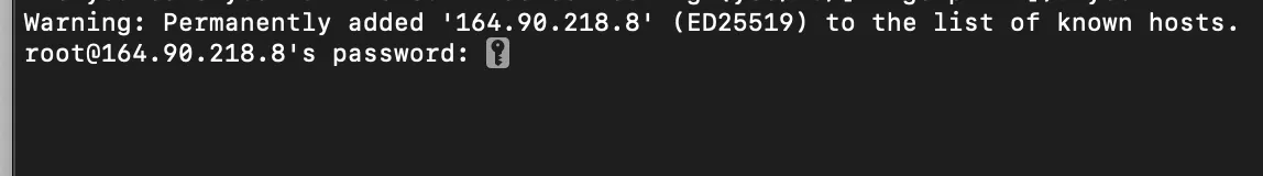 After this, it will ask you to enter the password that you set when creating the VPS: