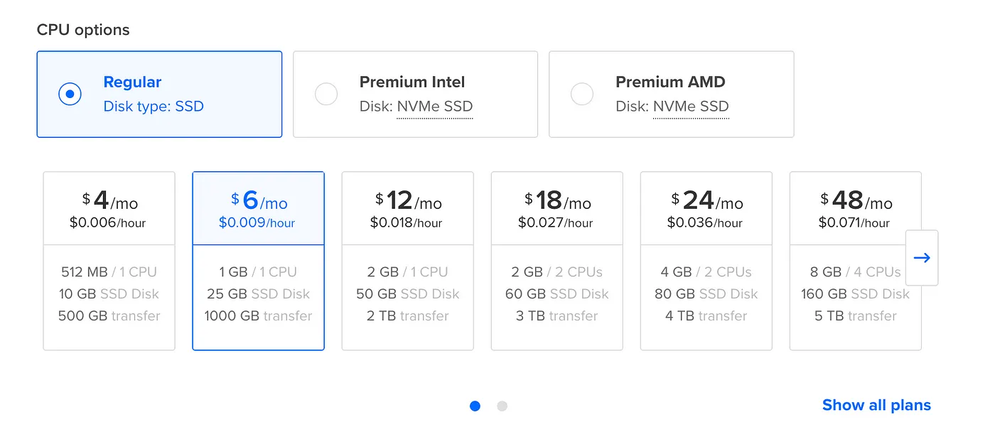 The server settings depend on the load your site will be under and the complexity of the project. Since I will be deploying a simple site, I chose the most minimal settings.