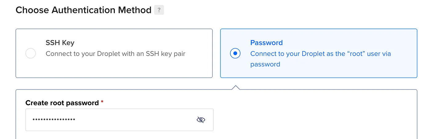 For the authentication method, I chose a password.