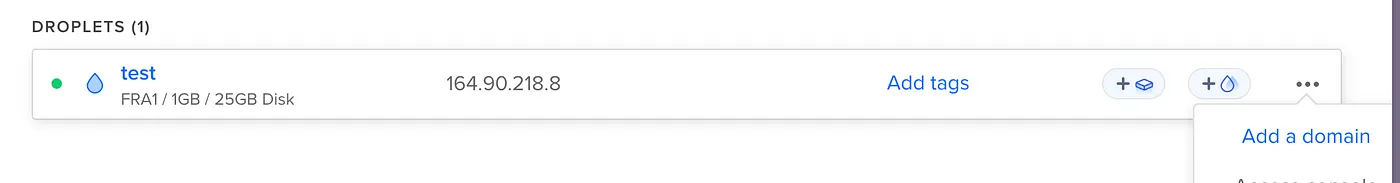 First, we need to input our domain on the VPS hosting service. In my case, it is DigitalOcean. Go to the dashboard where you can check your VPS and start: