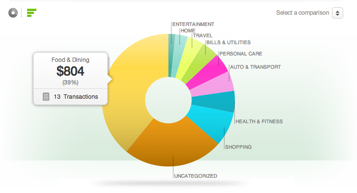 Instead, Mint.com takes transactions across a number of accounts (banks, credit cards, student loans, etc.) and then automatically creates “pretty pie charts” that have aggregated all the transaction data into categories like food, rent, etc.