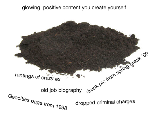 If a search for your name is generally positive, but including a particular keyword brings up negative or unwanted results, try to reclaim that term. Let’s say that a search for “John Doe” is positive, but “John Doe”+ “State College” brings up negative results. John Doe should start including the phrase “State College” in his positive content creation in order to associate it with his good reputation.
