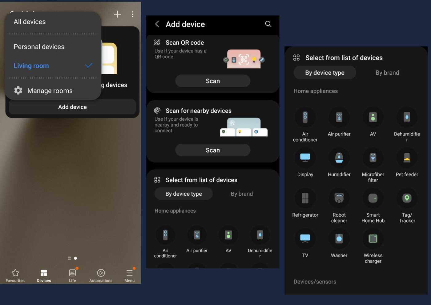 And you can either scan a QR code (which may not be applicable in this scenario) or scan for nearby devices.