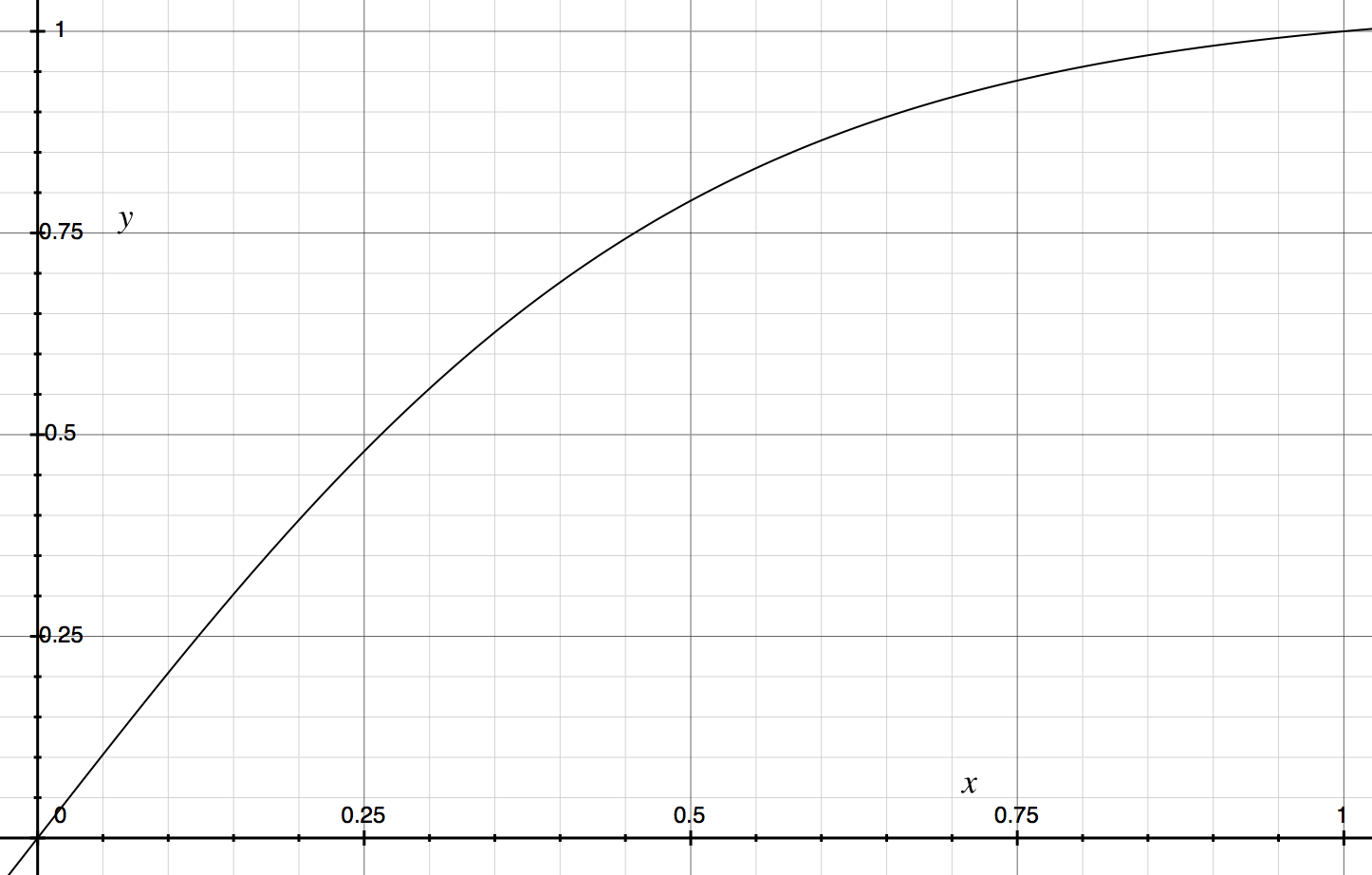 easing(0.00); // 0easing(0.10); // 0.2047403251776069easing(0.25); // 0.4793609299265755easing(0.50); // 0.7900128291929867easing(0.75); // 0.9389236079466523easing(0.90); // 0.9821358147987899easing(1.00); // 1