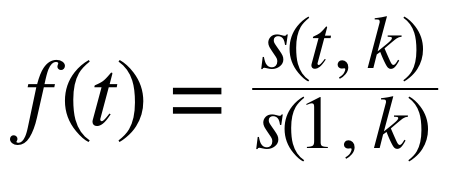 Equation 2: The ease out equation. s(t, k) is as specified in Eqn. 1. t is time, k is a steepness constant.