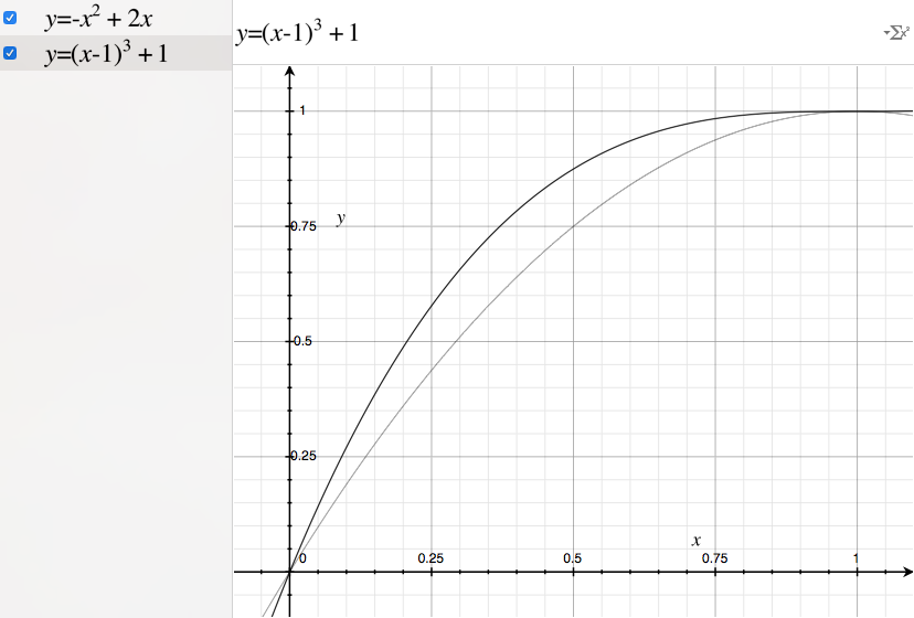 Figure 3: easeOutCubic (black) and easeOutQuad (gray)