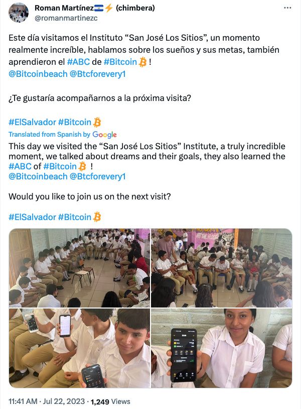 “Every Friday we visit schools for Bitcoin education where we talk about money and dreams, we teach them to set up a Bitcoin wallet, we help them receive their first satoshi and make transactions.”