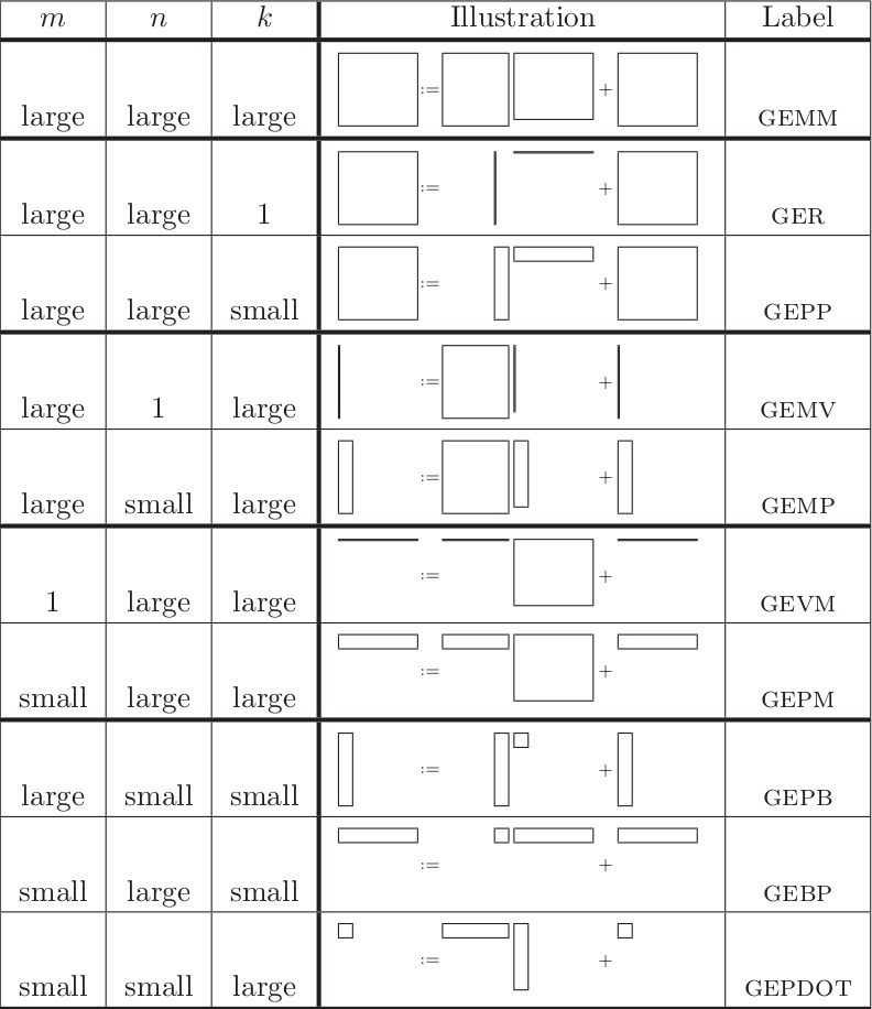 Denotes General Matrix Matrix operations of the form
