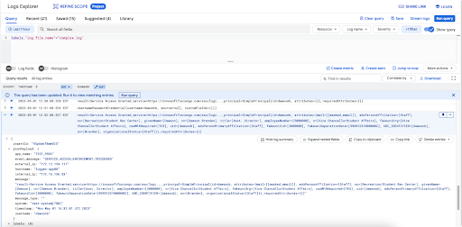 Finally, I check it on the Google Cloud Logging console as well: