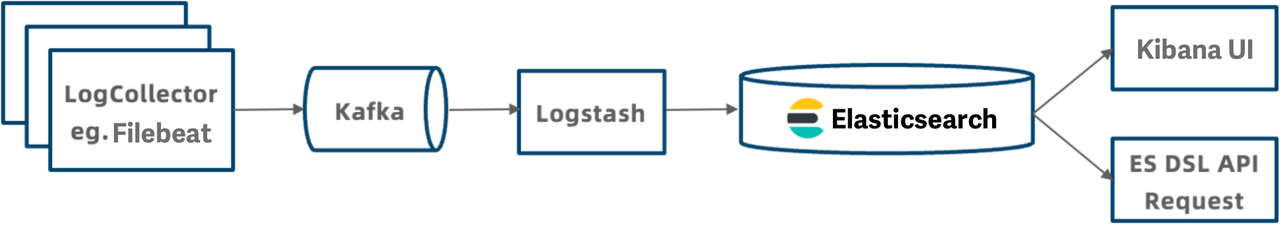 - Log query: Users search for logs via Kibana visualization or send a query request via Elasticsearch DSL API.