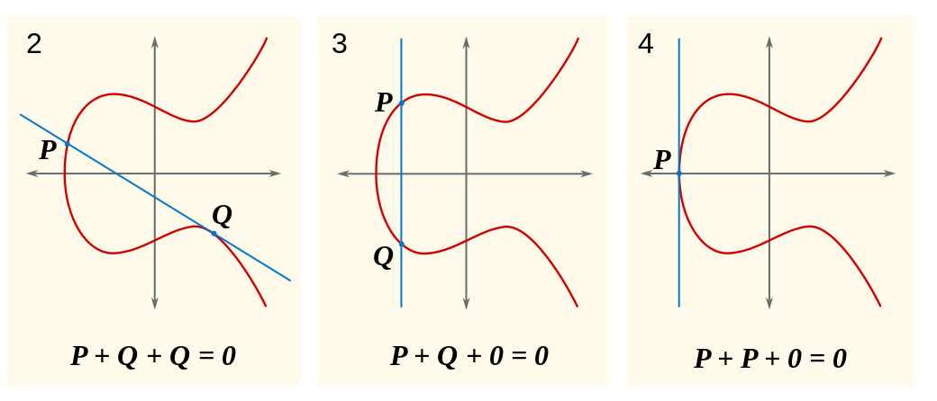 You can see that neither of these possibilities will cross a third point , we will cover all these in the next article , but if you can’t wait check “the group law” in wikipedia :)