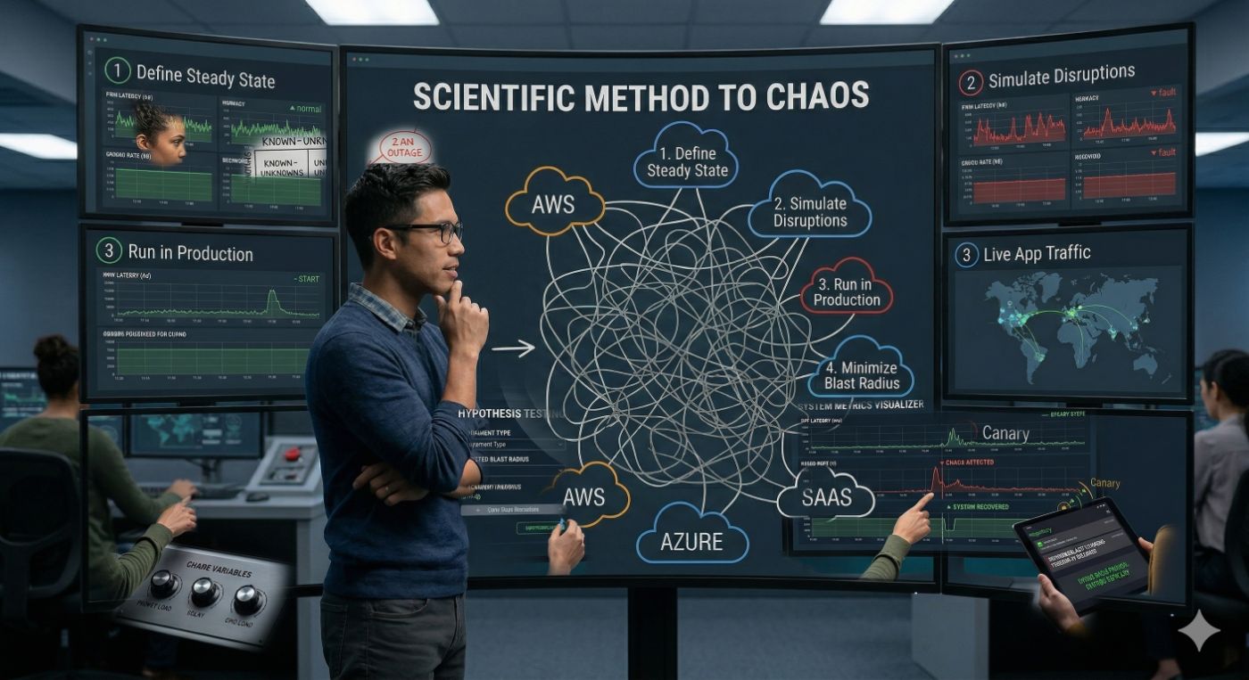 Chaos Engineering is not a random discipline, but a highly disciplined, systematic approach to finding vulnerabilities before they turn into 3 AM outages. As our architectures shift from predictable monoliths to micro-services built on hundreds of interdependent components spread over multiple cloud providers and SaaS solutions, the ability to catch failure modes through standard unit or integration testing has hit its limit. To understand this, let's start by understanding the mental model behind it.