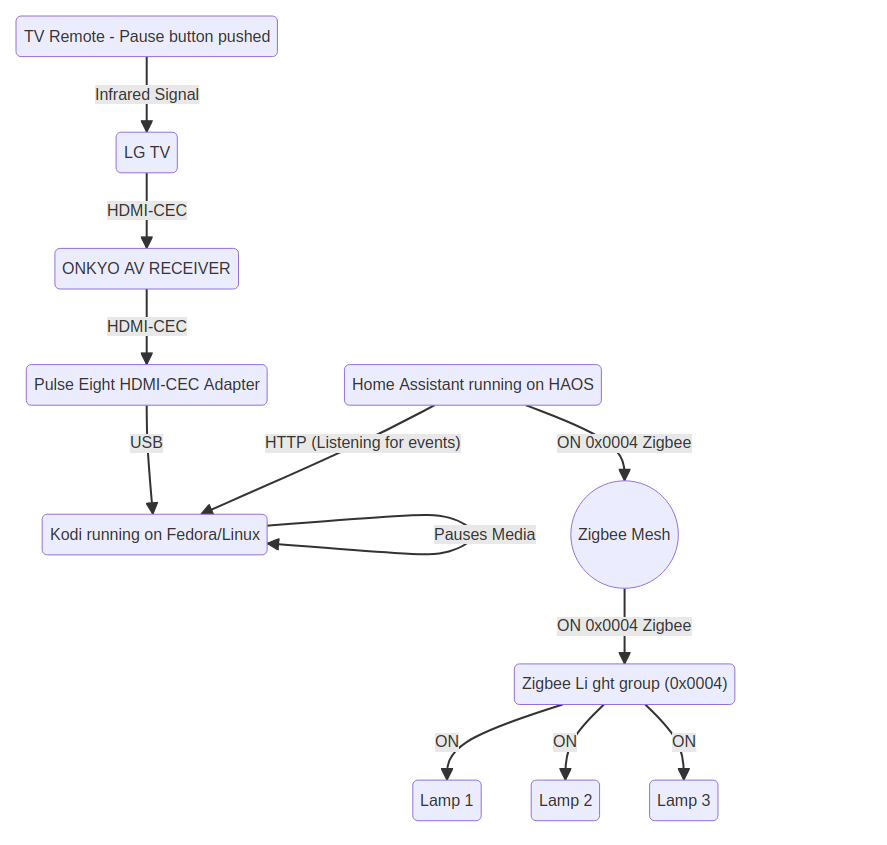 The goal is simple enough, I would like the lights to turn on when a movie is paused, and off again when the movie is resumed.