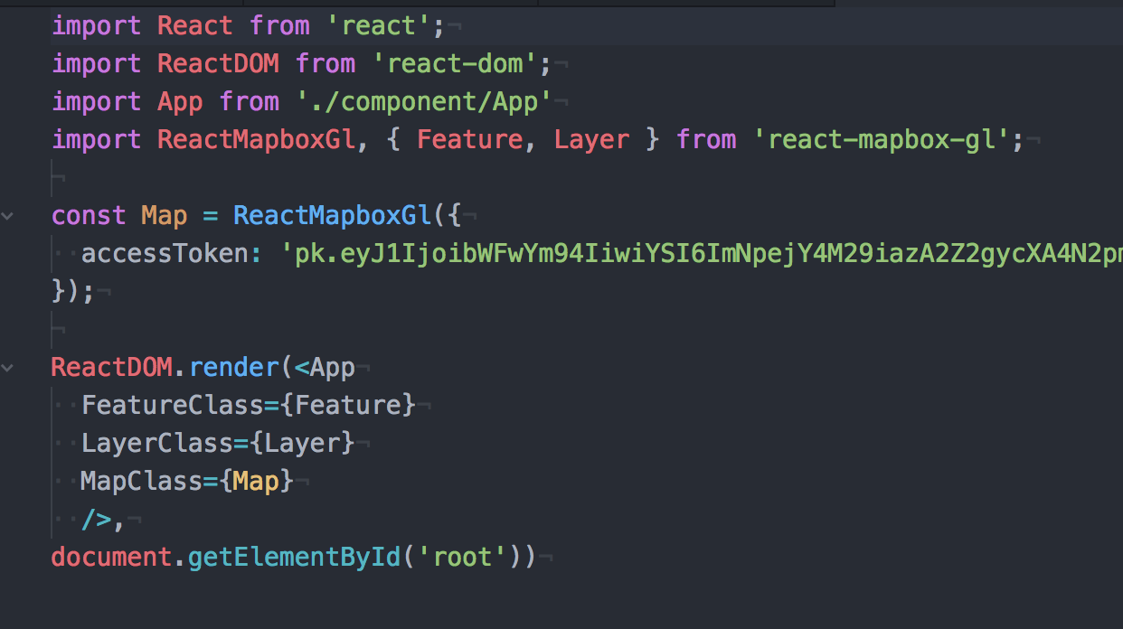 We first import react. Then, we import React Dom, which is a package that connects React to the Document Model Object. Then we import our actual file (App.js) with all the components. Then, we impor reactMapboxGl which allows us to import our Feature, and Layer from the package react-mapbox-gl.