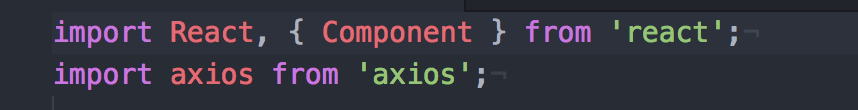 We import React, along with the components from React. We then import axios which is a package that allows us to make get and post request.