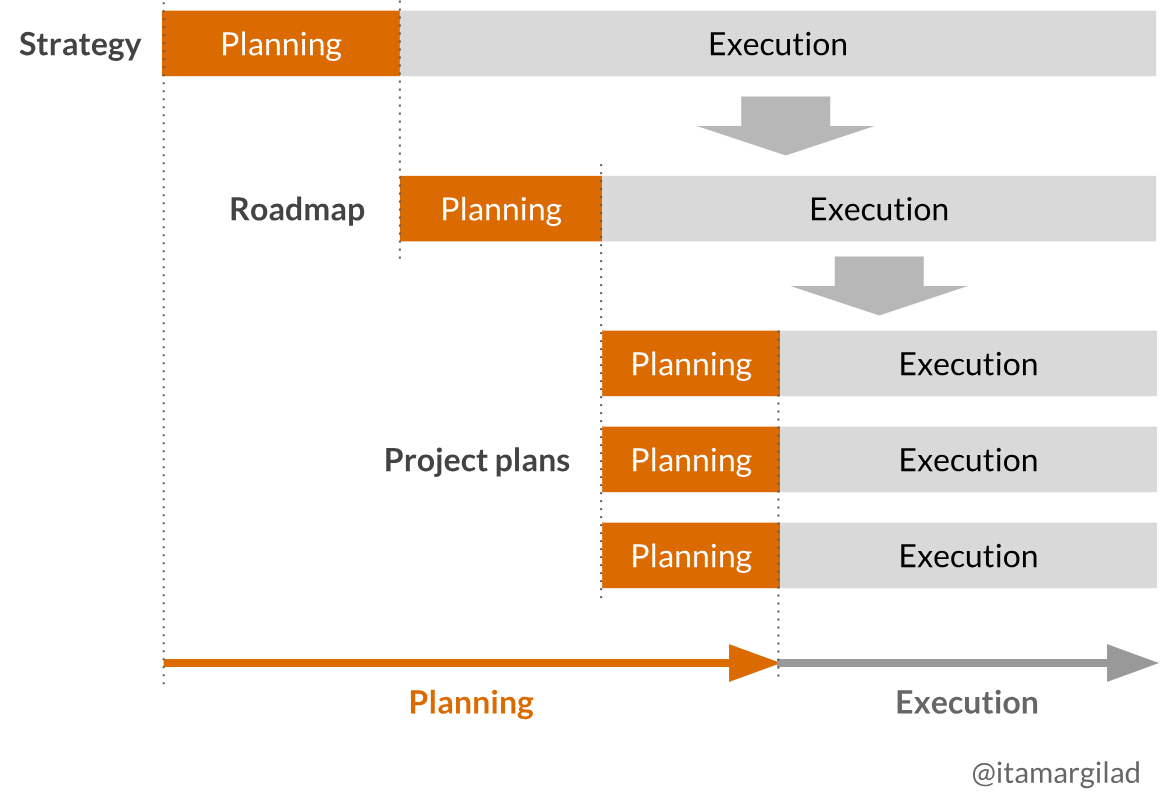 In tech we have also inherited the practice of multi-level planning. Our best practices look something like this: