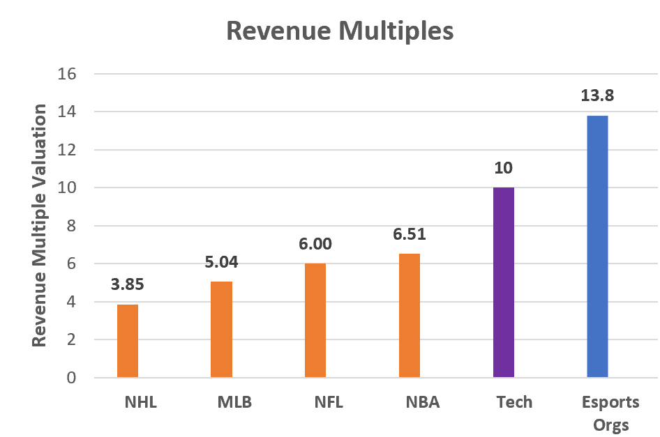 Esports Organizations = ~13x revenueTech Companies = ~10x revenueSports Franchises = ~5x revenue