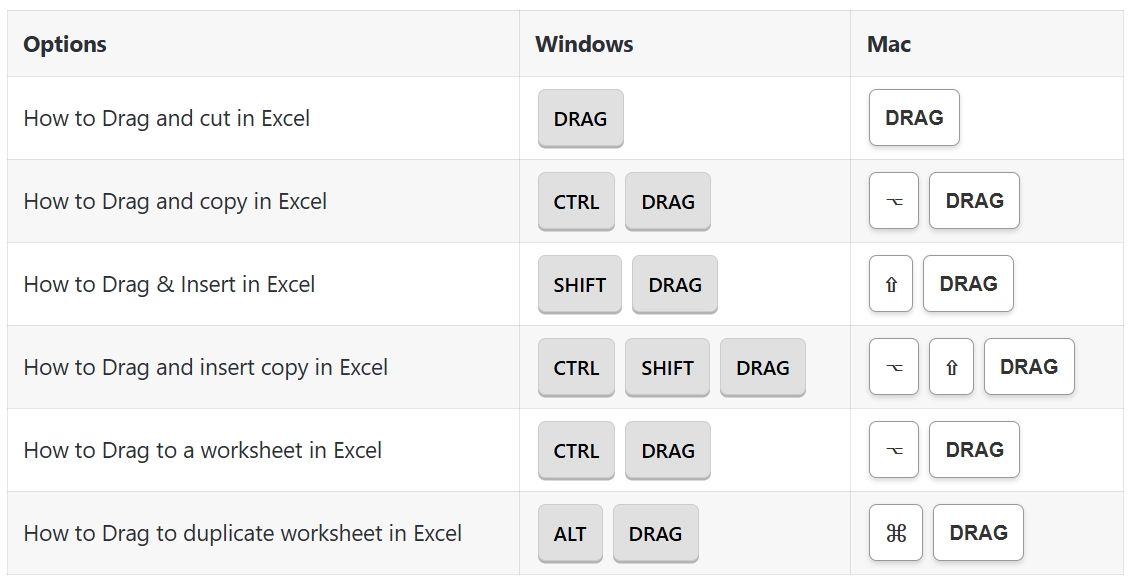 Drag & Drop Options Shortcuts: