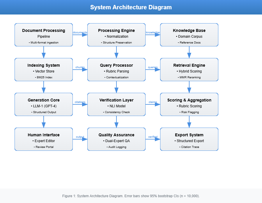 Switch out the rubric and the same stack that may be used to conduct literature surveys, compliance audits, or clinical case reviews. The shared trait: judgments that are necessary to survive examination and scrutiny.