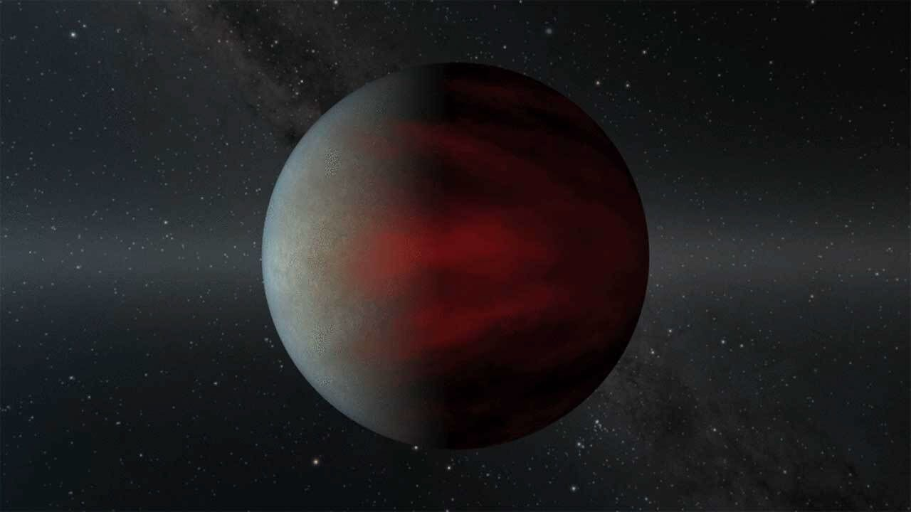 Another example is WASP-76 b, a hot Jupiter discovered in 2016 using the transit method, which is unusual for its proximity to its star — 0.033 AU, with a rotation period of 1.8 days. It is 1.83 times wider and 0.92 times heavier than Jupiter. The planet is tidally locked, with one side constantly facing the star and heated to 2400 °C, and a relatively cool night side (1500 °C). On the day side, iron evaporates and then falls as rain on the night side. Such are the extreme conditions on exoplanets!