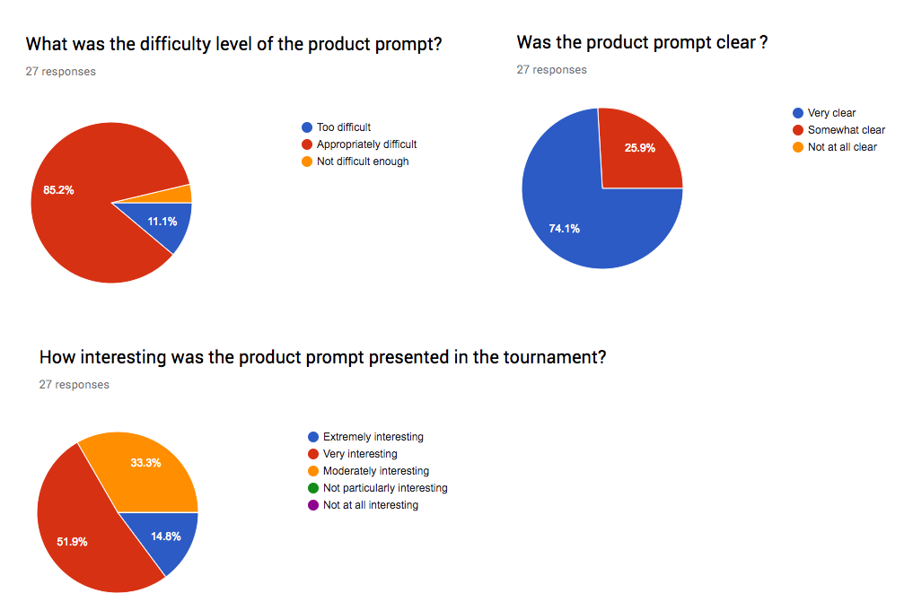 Overall our competitors found the product prompt to be clear, appropriately challenging and interesting. That said, there were definitely still areas we could improve: