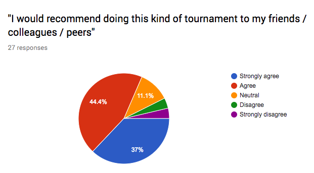 All in all, the Product Tournament was a lot of work, but I’m really happy we were able to pull it off. Probably the best feedback is that 81% of competitors would recommend something like this to their colleagues / peers.