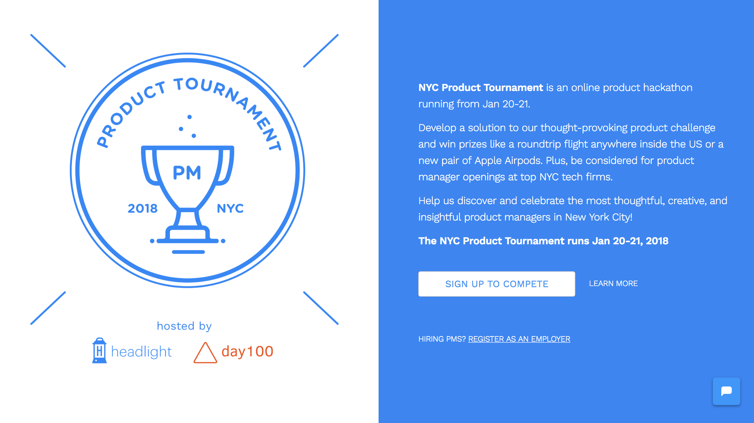 In January of 2018, we announced the NYC Product Tournament in partnership with Day100, a psychology-based hiring tech platform. The goal of the tournament was to help identify who were the top PM’s in the greater NYC area and help tech employers find their next product hire.
